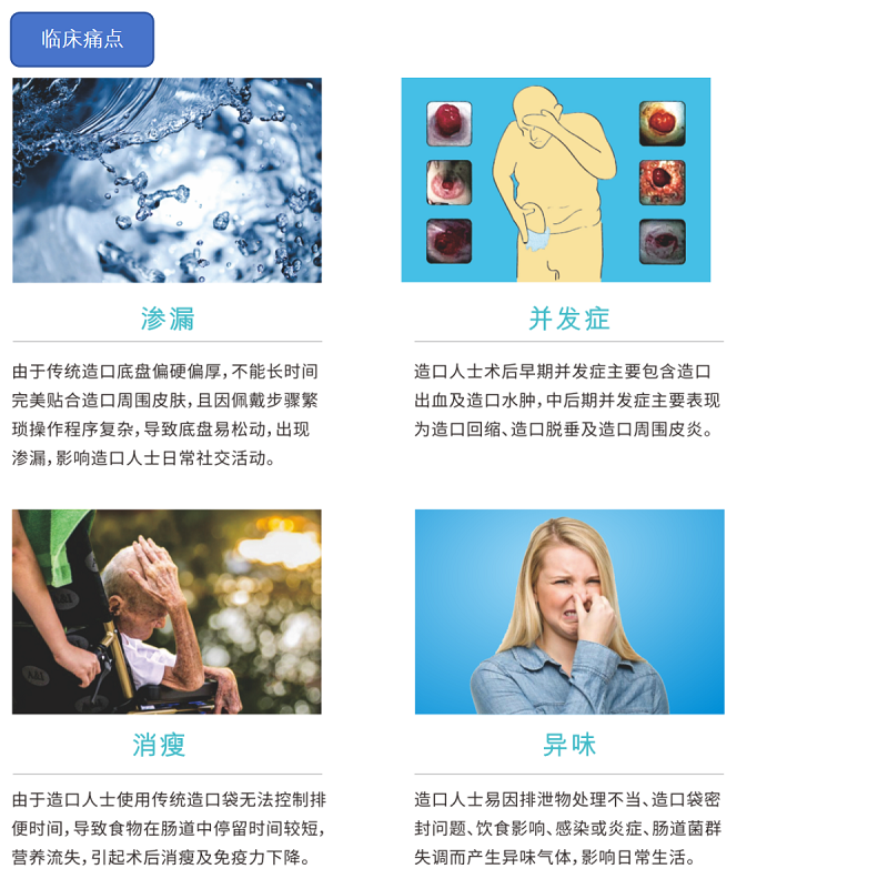 邦普醫(yī)療提供人性化的解決方案,發(fā)明了安全可靠的造口護理產(chǎn)品,用于回腸、結(jié)腸或尿路造口,改善了造口人士面臨的“滲漏”、“并發(fā)癥”、“消瘦”、“異味”四大臨床問題,極大地提升了造口人士的生活品質(zhì)。